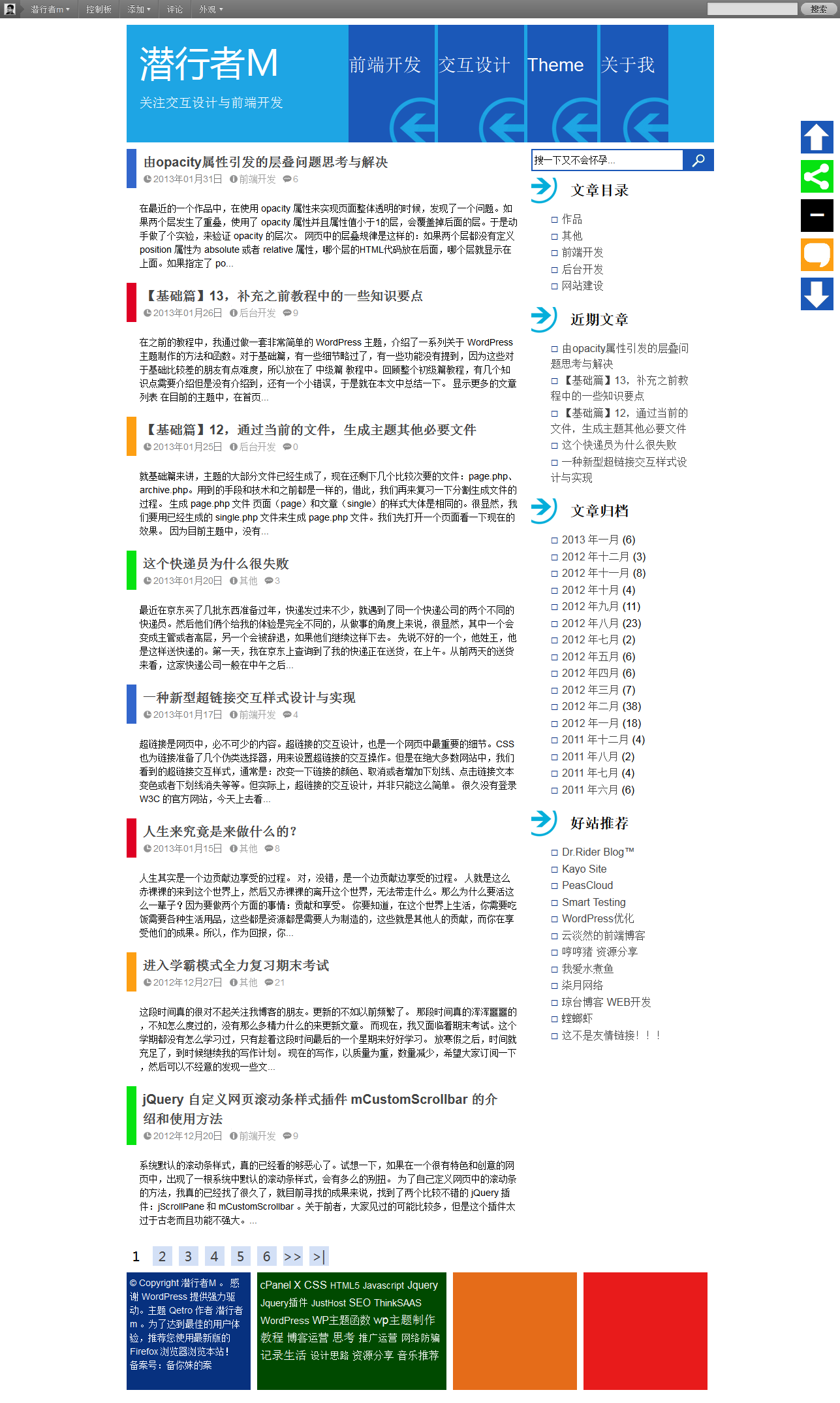 Qetro 是一款略带 Metro 风格的 WordPress 主题,免费开源,自由传播下载使用。*2013 年 5 月 30 日起,将停止共享和传播。